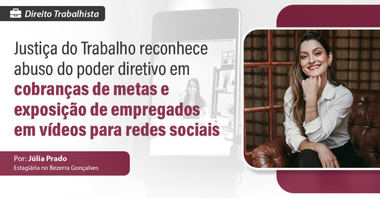 Justiça do Trabalho reconhece abuso do poder diretivo em cobranças de metas e exposição de empregados em vídeos para redes sociais Por: Júlia Prado O Banco Itaú foi condenado ao pagamento de R$ 10.000,00 por danos morais a uma empregada submetida a cobranças abusivas de metas e exposição vexatória.…