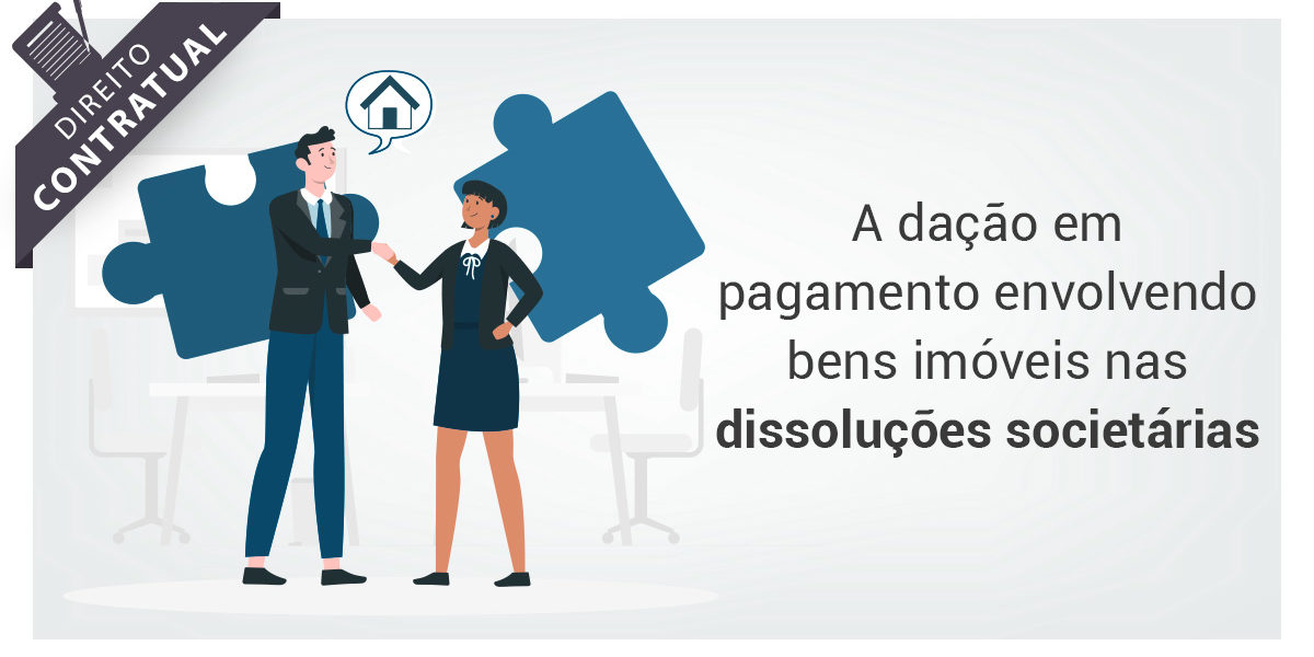No que diz respeito à dação em pagamento envolvendo o direito imobiliário nas dissoluções societárias, há casos em que os sócios recebem seus haveres (espécie de indenização pela saída da empresa) em bens imóveis pertencentes ao patrimônio da pessoa jurídica, de acordo com sua quota-parte. De tal modo, na posição de credor, encontra-se o sócio que se retira da sociedade, enquanto a pessoa jurídica que está sendo dissolvida ocupa a posição de devedora.