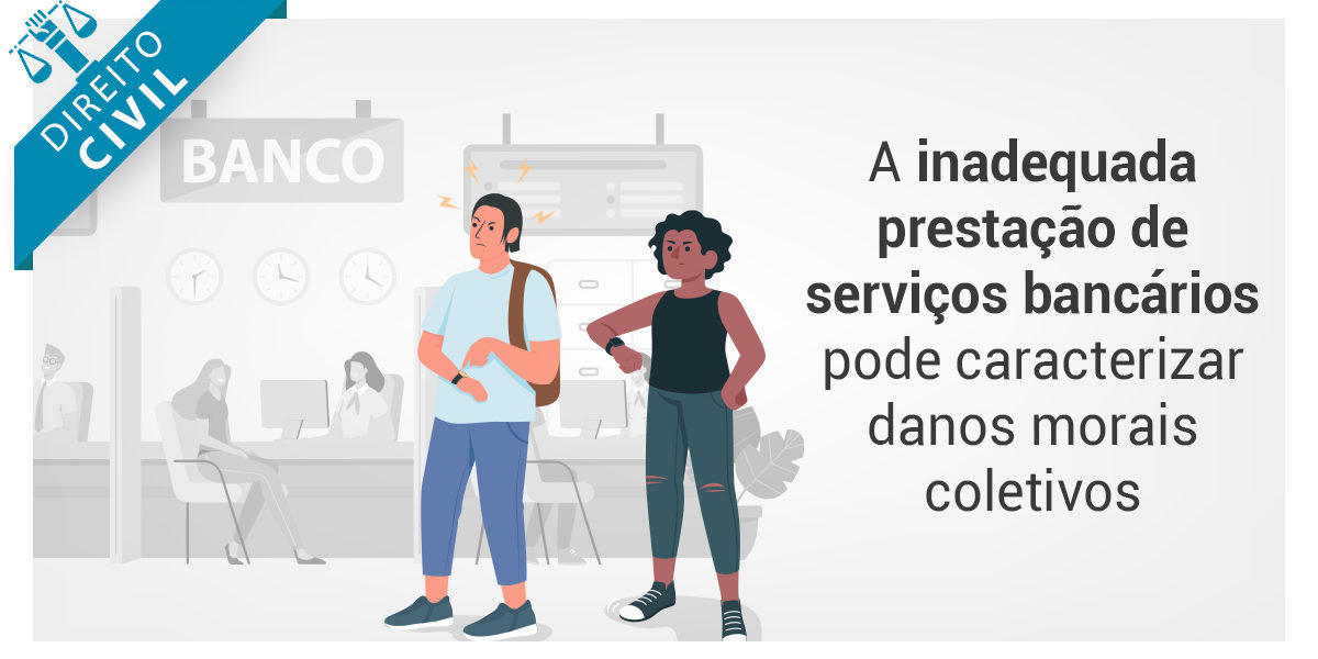 Conforme decidiu o Superior Tribunal de Justiça (STJ) no julgamento do REsp nº 1.929.288/TO, a prestação de serviços bancários inadequada, consubstanciada na reiterada existência de caixas eletrônicos inoperantes, falta de numerário e o consequente excesso de espera em filas de agências bancárias por tempo superior ao estabelecido em legislação municipal, pode caracterizar danos morais coletivos.