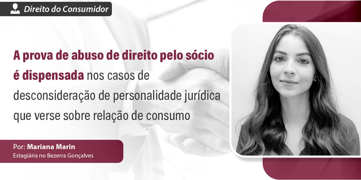 A prova de abuso de direito pelo sócio é dispensada nos casos de desconsideração de personalidade jurídica que verse sobre relação de consumo