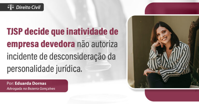 TJSP decide que inatividade de empresa devedora não autoriza incidente de desconsideração da personalidade jurídica Por: ANA CAROLINA CAMPARINI O caso:…