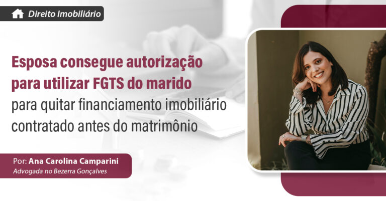 Esposa consegue autorização para utilizar FGTS do marido para quitar financiamento imobiliário contratado antes do matrimônio Por: ANA CAROLINA CAMPARINI O…