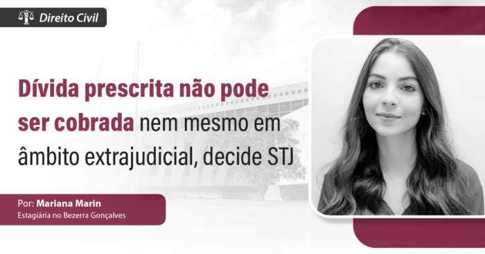 Dívida prescrita não pode ser cobrada nem mesmo em âmbito extrajudicial, decide STJ Por: Mariana Marin   Da decisão Em recente decisão no julgamento do REsp nº 2.088.100/SP, a Terceira Turma do Superior Tribunal de Justiça (STJ) entendeu que a prescrição impede não somente a cobrança judicial, mas também a cobrança extrajudicial da dívida. Desta…