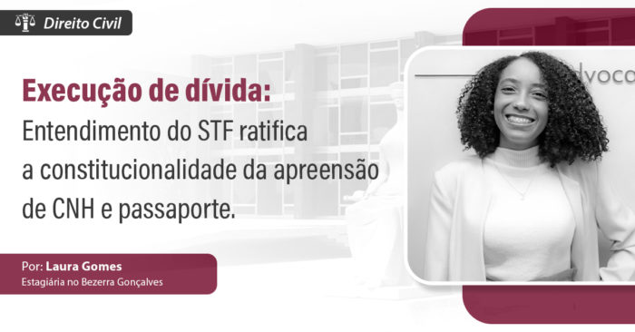 Execução de dívida: Entendimento do STF ratifica a constitucionalidade da apreensão de CNH e passaporte. Por: Laura Gomes Visando maior efetividade ao sistema de execução de dívidas, medidas atípicas como impedimento da participação em concursos públicos e licitações, apreensão do passaporte e Carteira Nacional de Habilitação, bem como suspensão de cartões de crédito têm sua…