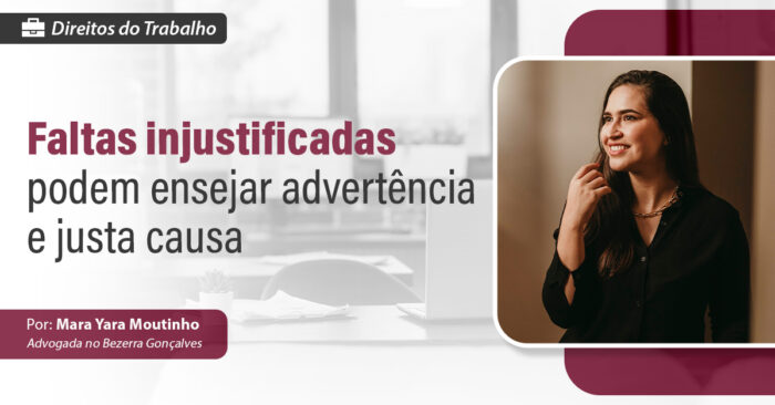 Faltas injustificadas podem ensejar advertência e justa causa Por: MARA YARA MOUTINHO   Faltas justificadas x Faltas injustificadas: As faltas justificadas são aquelas que vêm acompanhada de atestados/declarações que comprovem o motivo da falta, especialmente as amparadas pelo artigo 473 da CLT. Já as injustificadas são as faltas que não vêm acompanhadas de quaisquer documentos…
