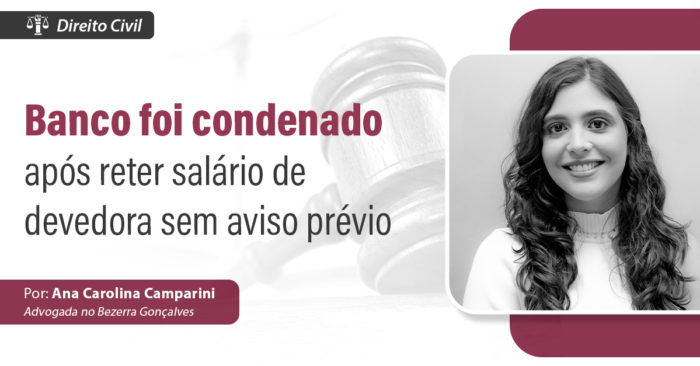 Banco foi condenado após reter salário de devedora sem aviso prévio