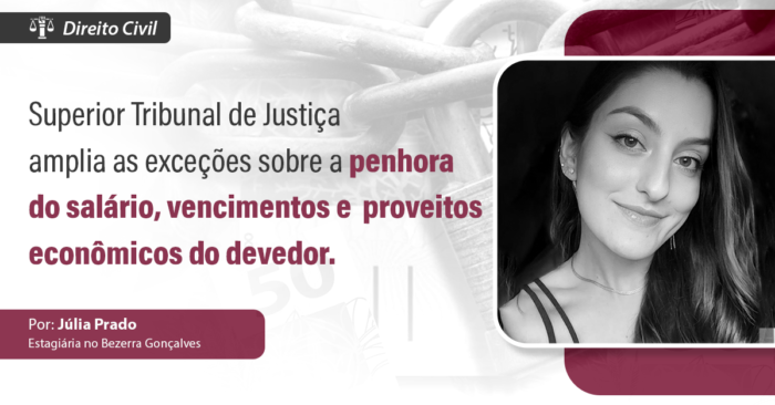 Superior Tribunal de Justiça amplia as exceções sobre a penhora do salário, vencimentos e proveitos econômicos do devedor. Por: Júlia Prado No que consiste a impenhorabilidade do salário? A impenhorabilidade salarial é uma garantia constitucional imprescindível para proteger os subsídios do trabalhador e impedir de ser penhorado ou descontado para o pagamento de dívidas judiciais.…