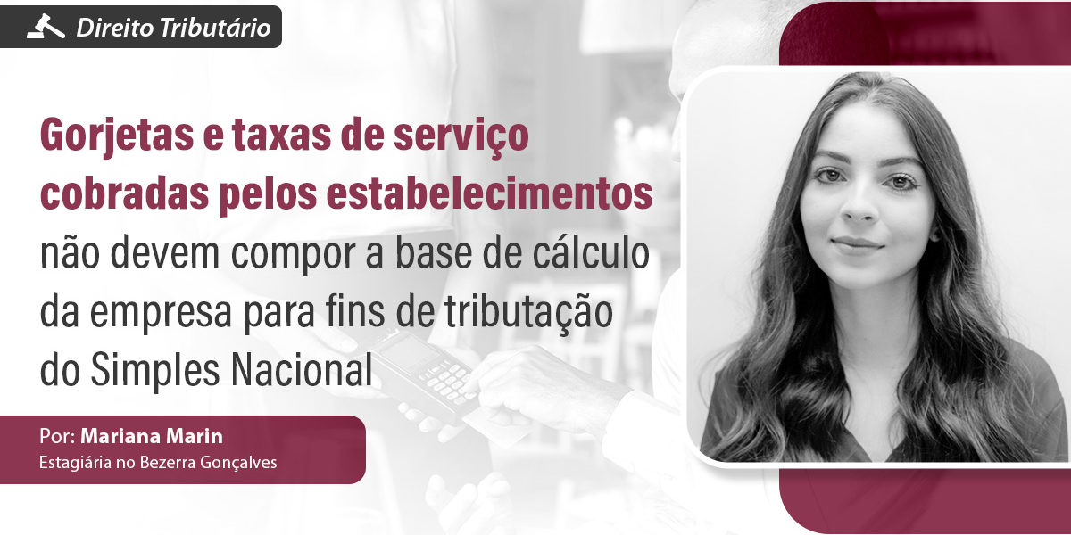 Gorjetas e taxas de serviço cobradas pelos estabelecimentos não devem compor a base de cálculo da empresa para fins de tributação do Simples Nacional