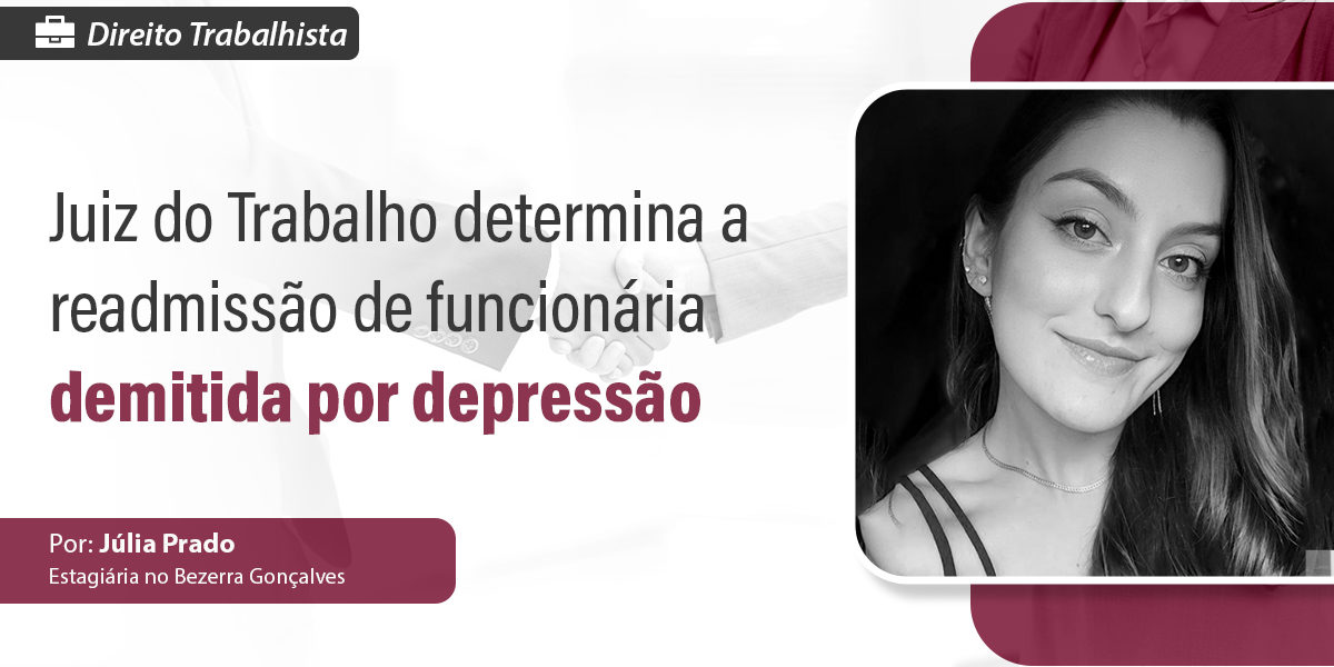 Juiz do Trabalho determina a readmissão de funcionária demitida por depressão