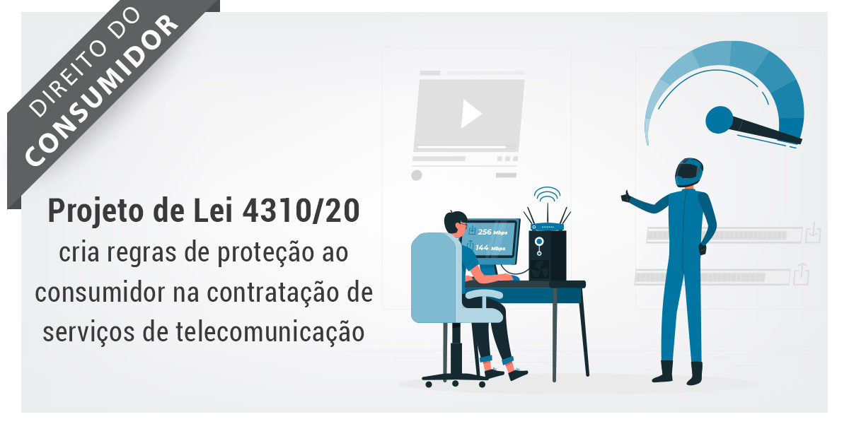 O Projeto de Lei 4310/20 foi apresentado pelo Deputado Kim Kataguiri e cria regras de proteção para o consumidor sobre a velocidade de banda larga contratada nos serviços de telecomunicação. A proposta faz adaptações no Código de Defesa do Consumidor e na Lei Geral de Telecomunicações, além de classificar como propaganda enganosa a pratica de informar uma velocidade e prover outra menor.