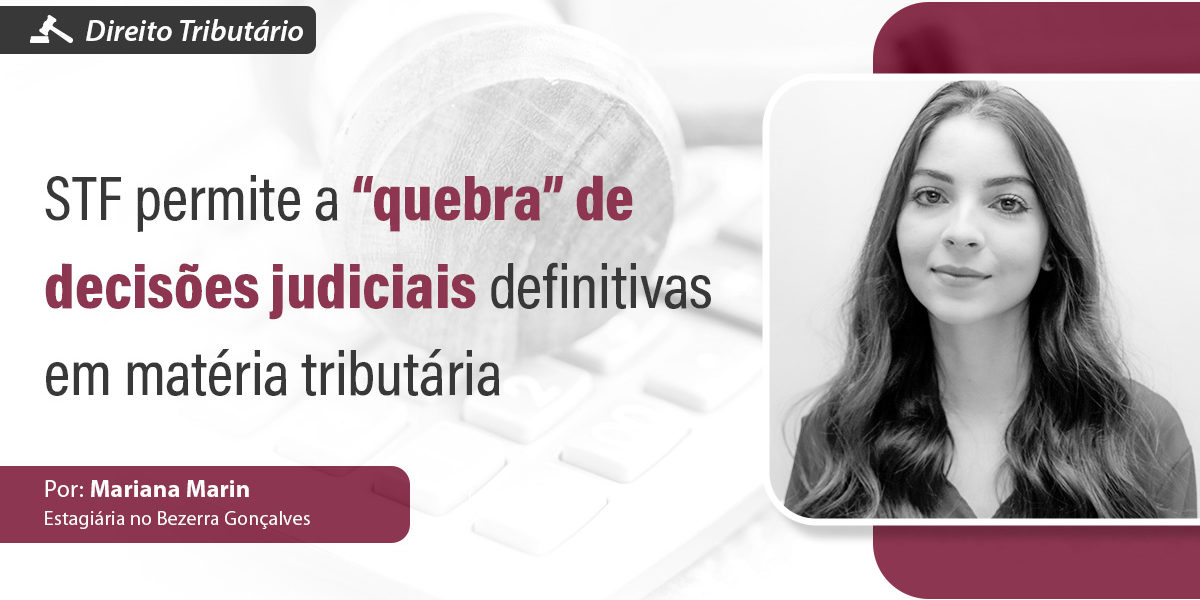 Nesta última quarta-feira (08), por maioria de votos, o Supremo Tribunal Federal firmou entendimento de que as decisões definitivas em matéria tributária poderão ser “quebradas” caso haja posterior julgamento pela Suprema Corte da mesma matéria em sentido diferente.